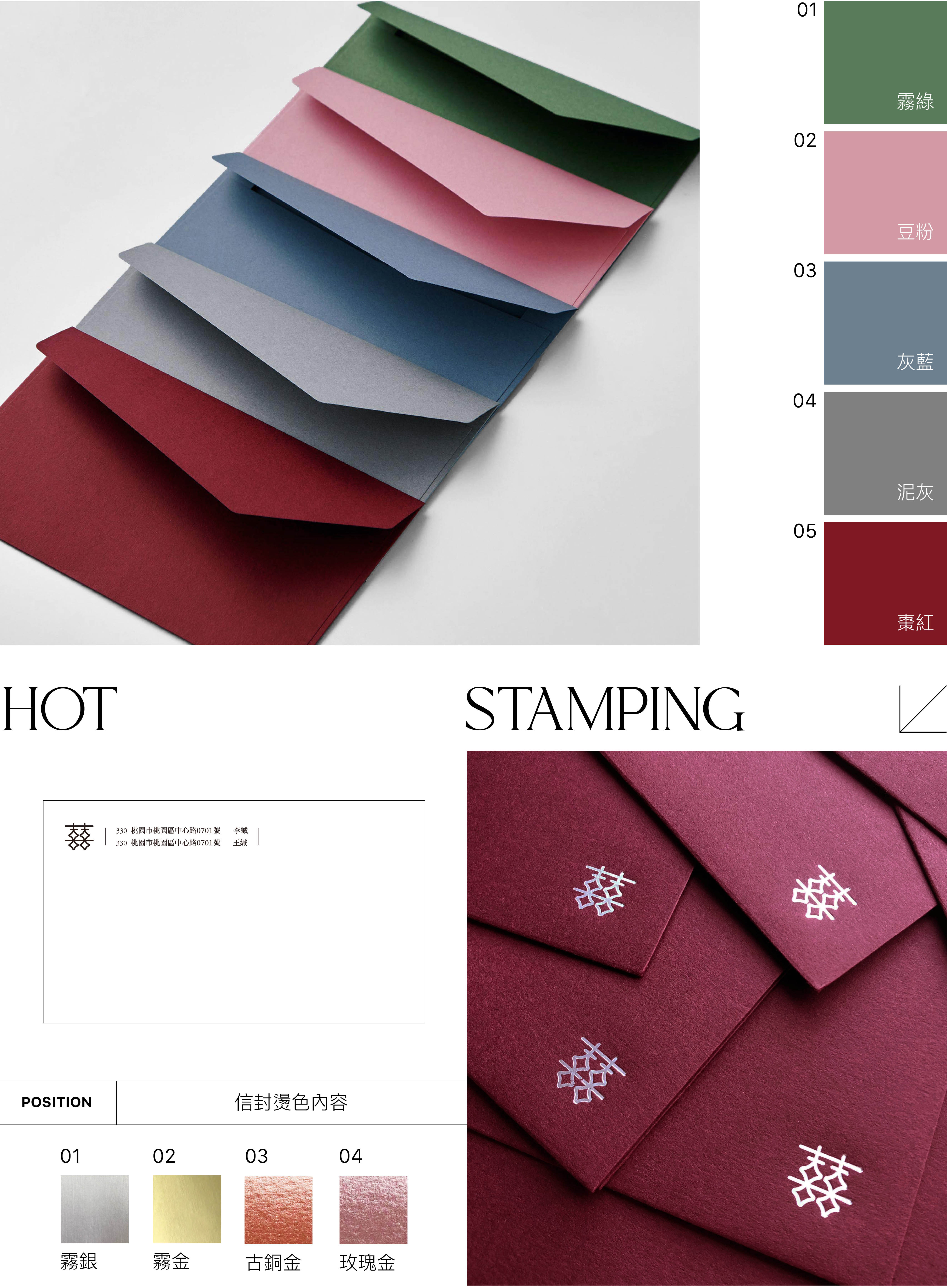 ✦ 信封燙金製程壓迫紙張產生的正面壓痕、背面凸痕,
