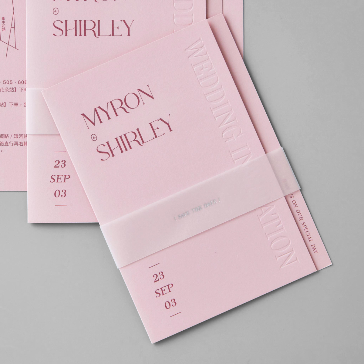 獨特的對摺喜帖,搭配燙色的描圖紙腰封,