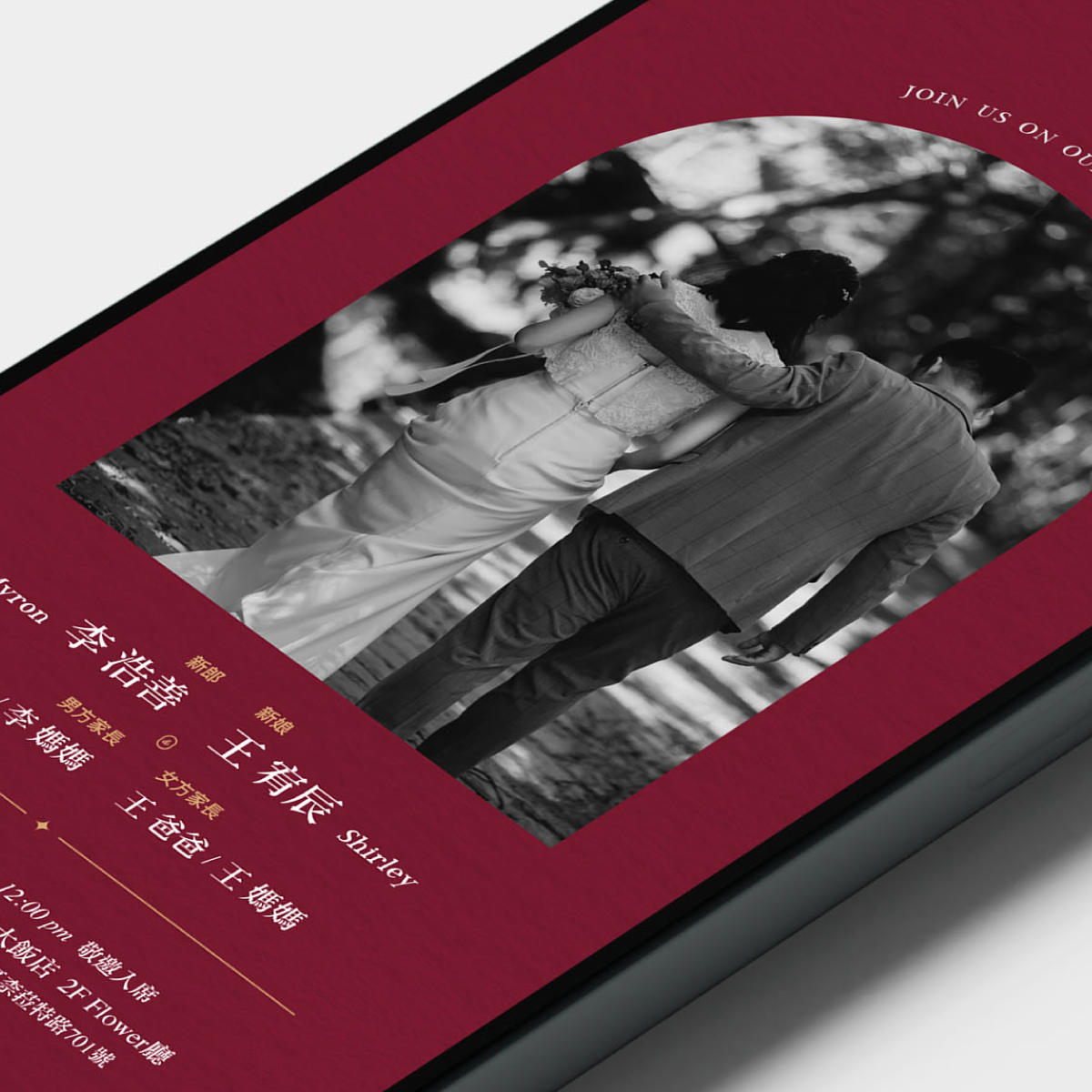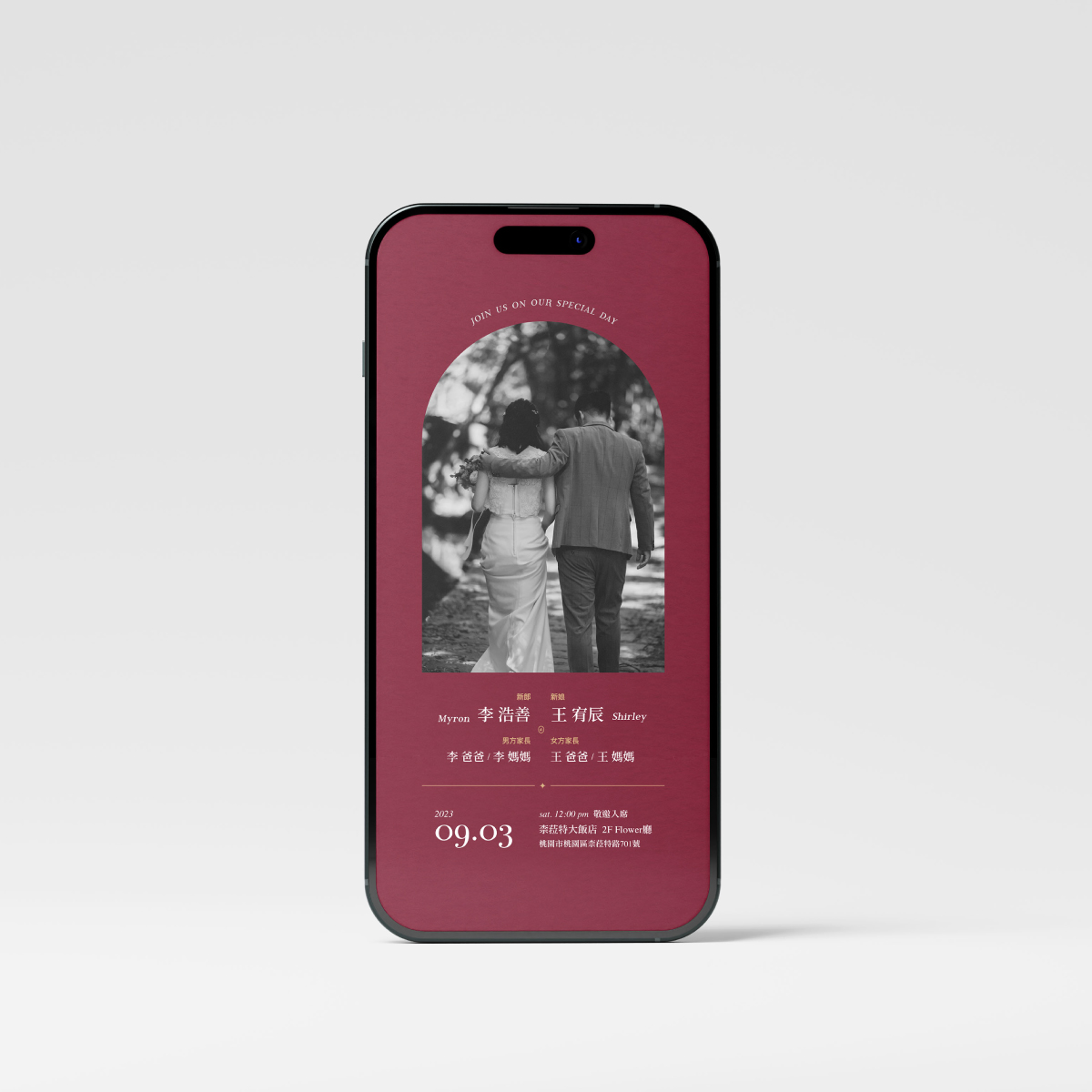通過郵件、社交媒體分享您的喜帖,讓您的親朋好友輕鬆收到您的喜訊。我們的設計將為您的婚禮增添一絲獨特的魅力.ᐟ✦ 電子喜帖整體配色可自行挑選搭配